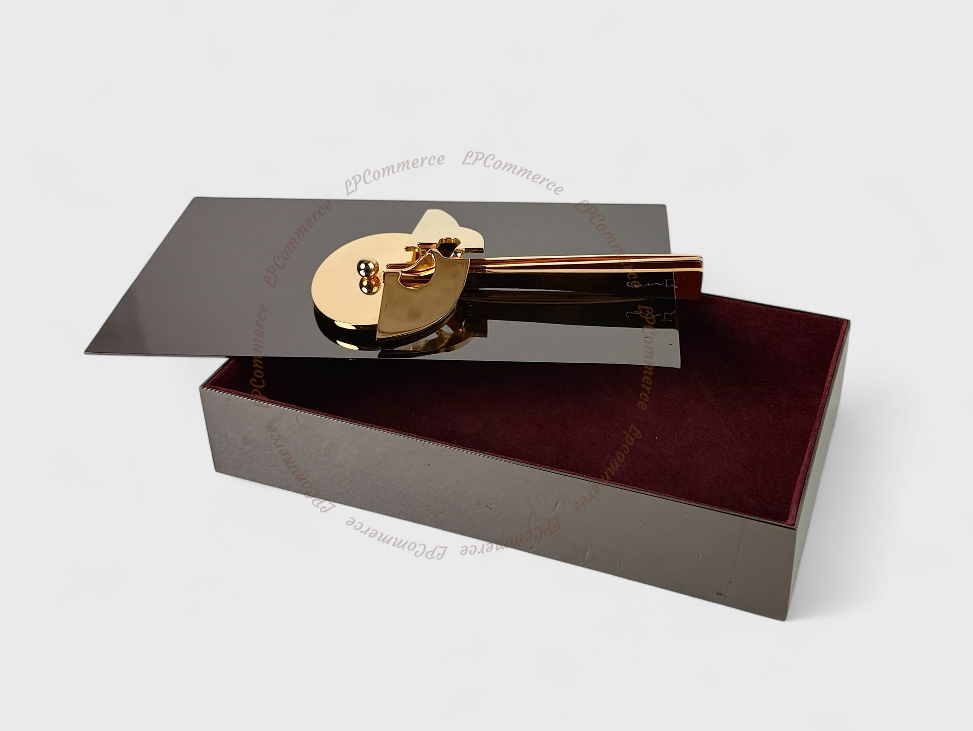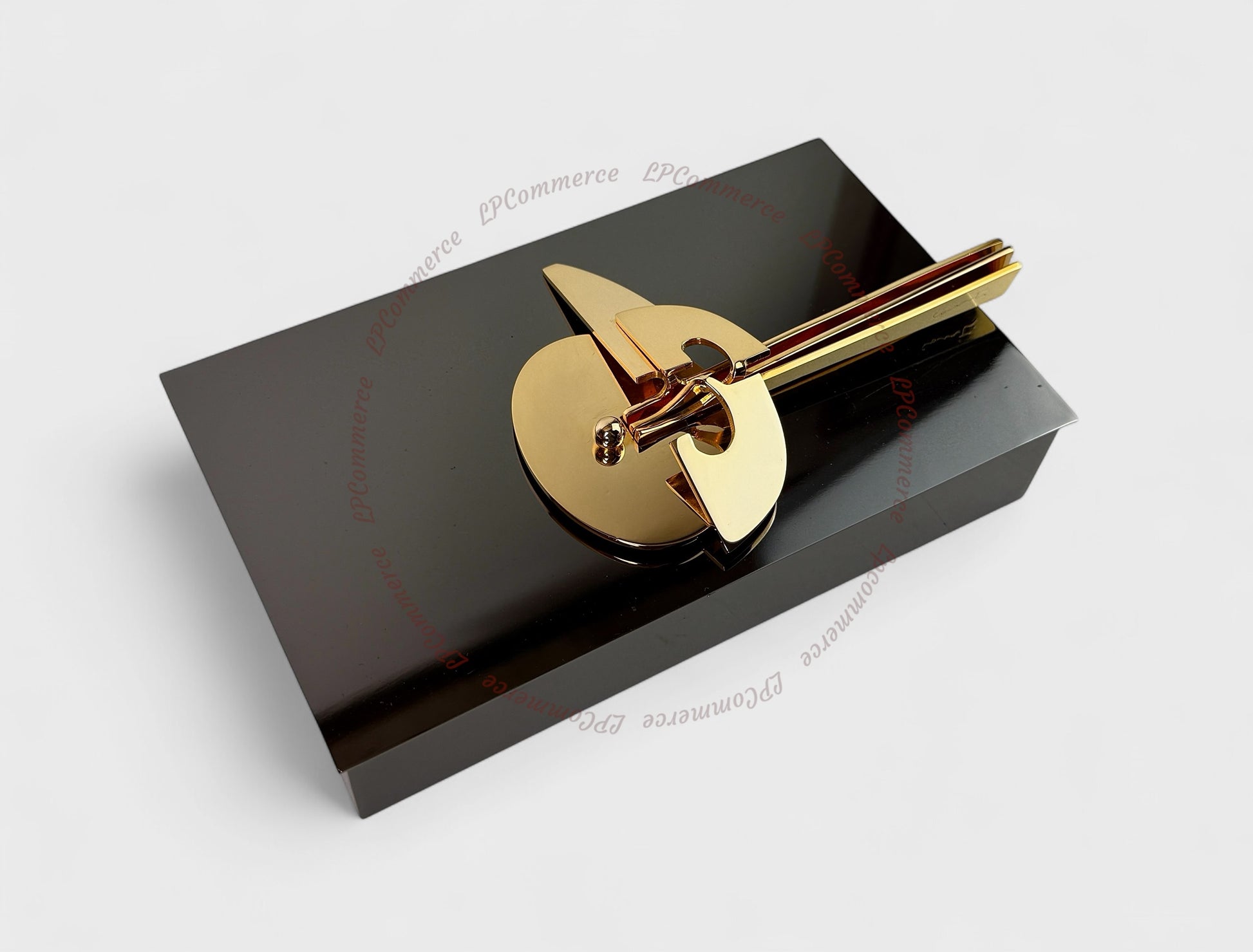 Porta gioie in metallo con scultura in ottone.